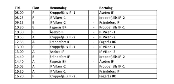 Lag 1 samlas i Åsebro 7.45 vid parkeringen vid planerna och Lag 2 samlas 8.30 vid plan F där lag 1 spelar.