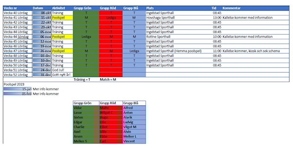 Nu ska grupperna Grön och Blå fått kallelse till vårt första Poolspel den 15/10!