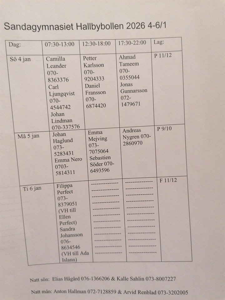 Hej alla, Saknar namn på de som sitter i: Sandahallen 4 jan- tillsätts av F10 samt Sandahallen 6 jan- tillsätts av P 13 Behöver få in detta snarast! Vänligen Annelie Handbolls Ledare 15 dec 2025 20kommentarer