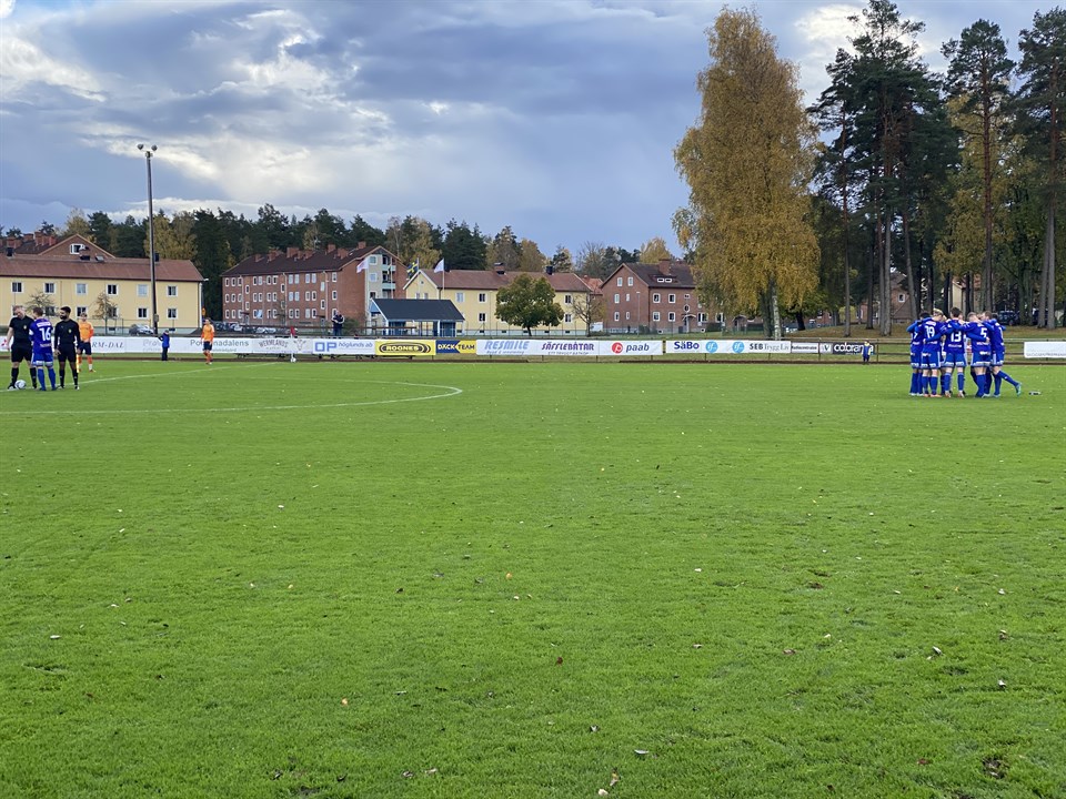 Idag avslutade vi seriespelet 2022 med bortamatch mot Säffle SK. Riktigt ruskigt höstväder och 1-1 efter att lagen ägt varsin halvlek. Första Vi startar matchen i ett rasande tempo och skapar ett par riktigt vassa målchanser innan matchen hunnit bli kvarten gammal. Dock utan utdelning. Närmast kommer Axel Johansson när han stöter Oskar Enströms inspel i ribban. Hemmalaget försöker ställa om men vi har allt som oftast bra koll på detta. Det blir dock livsfarligt vid ett tillfälle när en Säfflespelare lyfter bollen över Nicke och i insidan av stolpen och ut. Vi tar ledningen i 43:e min när Dani Kolo frispelar David Larsson som avslutar vid hemmamålvaktens närmaste stolpe. 0-1 på tavlan i paus således och rättvis ledning för vår del. Andra Om första halvek var bra så var andra akten betydligt sämre från vårt håll. Hemmalaget satt i förarsätet i stort sett under 45 minuter och vi fick kämpa hårt för att försöka freda vårt mål. Kvitteringen kommer i 63:e min efter att ett inlägg stöts in på bortre stolpen. Resten av halvleken fortlöper med Säffle i förarsätet men vi lyckas hålla de allra vassaste chanserna borta och matchen slutar 1-1. Sammanfattning En match med två ansikten där vi äger första halvek och Säffle den andra. Oavgjort känns därmed rättvist och vi avslutar säsongen med en poäng i en tuff bortamatch. Nu tränar vi två pass nästa vecka innan vi går på lite välförtjänt ledighet. Laget: Niklas Eriksson Arvid Bergman Mahdi Abdallah Erik Lundmark Jonatan Nilsson(k) Felix Ekblad David Larsson Oskar Enström Dani Kolo Jacob Berg Axel Johansson(68) Avb: Anton Larsson, Hampus Johansson, Daniel Jonasson, Emil Bach Jensen, Ludvig Sundberg, Paul Khajo(68)