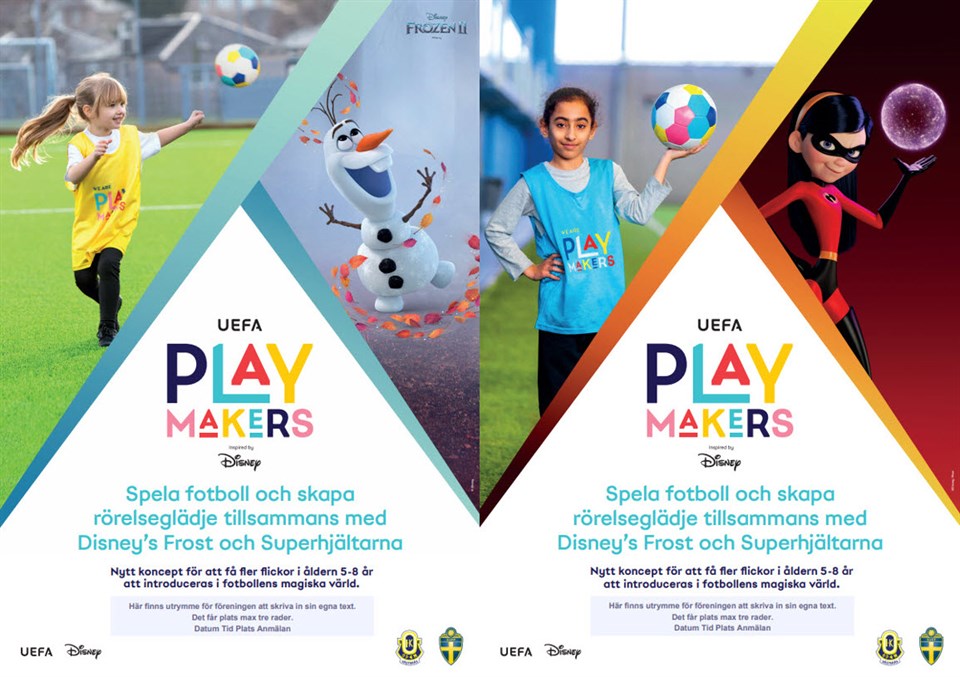 ... för UEFA Playmakers - utbildningen kommer att hållas den 14 och 28 mars (digitalt). Vi är i startgroparna för vår tjejsatsning för de allra minsta under 2021. Det finns fortfarande plats för två till tre kvinnliga ledare (äldre än 16 år) att tillsammans med tjejerna från F07 ta sig an den första kullen av flickor åldern 5-8 år. Tanken är att denna grupp ska få köra eget spår av fotbollsskolan för att sedan gå vidare som eget lag med kvinnliga ledare. NÄR vi är redo kommer vi att be er alla att sprida nyheten - vi har precis fått marknadsföringsmaterialet både för affischering och sociala medier!