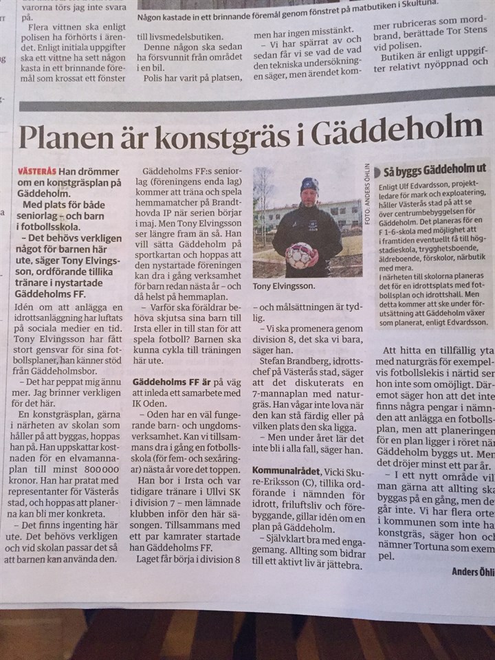 Äntligen verkar våren vara på väg och många av lagen har redan spelat flertalet träningsmatcher. Under ett par veckor har vi använt grusplanen på Brantdhovda IP med bra resultat. Naturgräset har inte börjat växa ännu (för låg jordvärme), så där får vi ge oss till tåls. Vattnet ska nu vara påslaget i omklädningsrummen för de som vill nyttja dessa. Under säsongen kommer vårr A-lag ha ett samarbete med division 5 klubben Afganska. Vårt U19 lag kommer att samarbeta med nybildade Gäddeholms FF (med spelare som tidigare spelat för Ullvi SK). Detta ger tränarstaberna möjlighet att erbjuda speltid till flera spelare. Givetvis fortlöper samarbetet mellan A-laget och U-19 som tidigare. Bifogar artikel i VLT med Tony från Gäddeholms FF där vårt samarbete omnämns. Ser fram emot en spännande säsong!