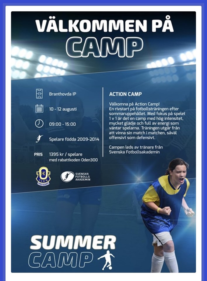 I samarbete med SvFA erbjuder IK Oden ett 'Action Camp' för flickor och pojkar födda 2009-2014 på Brandthovda IP den 10-12 augusti. En kanonmöjlighet att starta upp efter semestern med rolig och högkvalitativ träning inför höstsäsongen!! https://svfa.se/aktivitet/vasteras-10-12-aug/ P-13 18 feb 2022 0kommentarer