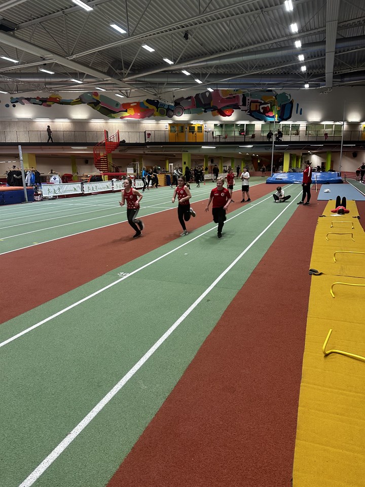 Hej! Igår hade vi en bra träning på Rimnershallen. Vi startade med att jogga runt i hallen. Därefter blev det vidare uppvärmning i form av olika aktiviteter såsom mångsteg, enbenshopp, vertikalhopp, flerstegshopp där vi in i mellan joggade tillbaka till startposition. Efter en kort vätskepaus blev det reaktionsstarter med avslut i tjockmatta. Därefter tog vi av oss skorna för att arbeta vidare med koordination och stegövningar på mjukmatta. Nu fokuserade vi på olika stegövningar och hoppkordinerade övningar med hjälp av låga häckar samt frekvensstege. I den förpubertala åldern är det mycket viktigt att arbeta med just koordination, vilket vi ofta fokuserar på i början av träningspassen. För att skona kropparna väljer vi att träna detta på mjukmatta och utan skor. Vi har även några barn med rehabövningar för både knä och hälsenor. Vi delade därför gruppen och lät de med rehabövningar köra detta istället för hopp. Är det så att era barn går hos fysioterapeut och har rehabövningar som ska göras som komplement till vanlig träning är det viktigt att ni meddelar oss detta så vi kan hjälpa barnen med detta under de ordinarie träningarna. Efter en kort vätskepaus blev det dags för genomgång av starter. "På edra platser, set, go" och hur rutinerna för detta ser ut under tävling. Barnen fick därefter köra ett par hela 60-meterslopp med korrekt start. Därefter delade vi upp barnen. Några sprang ett 800-meterslopp på bana medan en cyklade och fyra arbetade med medicinboll, antingen i par eller enskilt. Meddela gärna oss tränare om era barn har olika typer av åkommor som uppstått inför träningarna. Detta så vi vet om barnen behöver stå över en viss typ av aktivitet. Ibland märker vi att vissa övningar inte vill genomföras och då behöver vi sålla i om det endast är ovilja för just den typ av aktivitet eller faktiskt är en exempelvis skada. Grunden för träningen är att man är med på de övningar som planerats, utefter sina egna förutsättningar. Är man förkyld (sjuk) eller har så ont så man inte kan delta är man hemma. Eller om man har skador där man blivit ordinerad rehab så lägger vi in det i träningspasset för barnet. Ju mer info vi har desto bättre blir träningarna för era barn. Inom kort kommer mer info om lördagens tävling. Vi har själva inte fått tillgång till tidsprogram men lägger ut det så snart vi fått det till oss. På torsdag har vi fått tillgång till Rimnershallen så träningen förläggs även på torsdag till Rimnershallen. Vi ses där kl 17:15-18:30. Vänliga hälsningar Anna & Linda