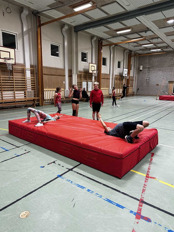 Hej! Igår hade vi en fin träning tillsammans och vi välkomnade även två nya aktiva; Stella och Arvid. Varmt välkomna! Vi startade med uppvärmning, löpskolning och aktiv stretch. Därefter blev det reaktionsstarter av flera olika varianter. Detta tycker barnen är väldigt roligt och hjälper oss gärna att variera övningarna. När första delen av träningen var klar gick vi över till att träna upphopp. Vi körde i en "åtta" mellan två tjockmattor och vid mattorna gjordes upphopp på benet längst från mattan. Här fick vi tränat både kondition, koordination och spänst. Vi delade sedan gruppen och arbetade med fallteknik och hur "bågen" på kroppen ska se ut i luften över ribban samt en landning på övre ryggen/ skuldror. Andra gruppen tränade hopp över "mjuk ribba". Vi avslutade med "frökenboll" med inslag av styrka och därefter två löpstafetter. Vi kommer att fortsätta med olika hoppkoordinationer samt specifika teknikövningar även på torsdag, då vi återigen kör träning i Västerskolan. Ha en fin dag! Vänliga hälsningar Tränarna