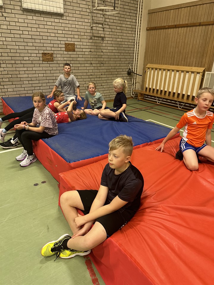 Hej! Gårdagens träning startade med en uppvärmningslek som en av barnen kallar "Fröken- boll" Blir du träffad av bollen blir det några styrkeövningar och därefter är det full fart igen på "planen". Det är tydligt att barnen uppskattar de mer lekfulla inslagen, vilka är betydligt enklare att genomföra i en gymnastikhall än på exempelvis Rimnershallen. Därefter blev det löpskolning där vi fokuserade på olika typer av "upphopps-övningar", då vi hade höjdhopp på schemat. Vi blandar kända övningar med några nya, vilket uppskattas av barnen. Efter uppvärmningsdelen delades gruppen i två, där ena halvan arbetade 45 sek (på varje station) i en cirkelbana med styrkeövningar. En uppskattad övning var stationen "vila" :-) Andra gruppen arbetade med höjdhopp. Vi tränade att falla baklänges i mattan samt en mer strukturerad övning där svank och landning övades. Därefter blev det hopp i mattan. Med tanke på att det var längesedan vi haft tillgång till höjdhopps-matta fokuserade vi mycket på upphoppet, exempelvis vilken fot som kändes bäst att göra upphoppet med och då också vilken sida av mattan löpningen skulle göras från. Grupperna bytte sedan av och vi avslutade sedan med en enkel stafett. Tiden går fort när man har roligt, och vips så var träningen över för denna gången. På tisdag blir det återigen träning i Västerskolan 18.15-19.30. Förhoppningsvis blir det då tre nya aktiva som kommer på besök. Ha en fin dag! Tränarna