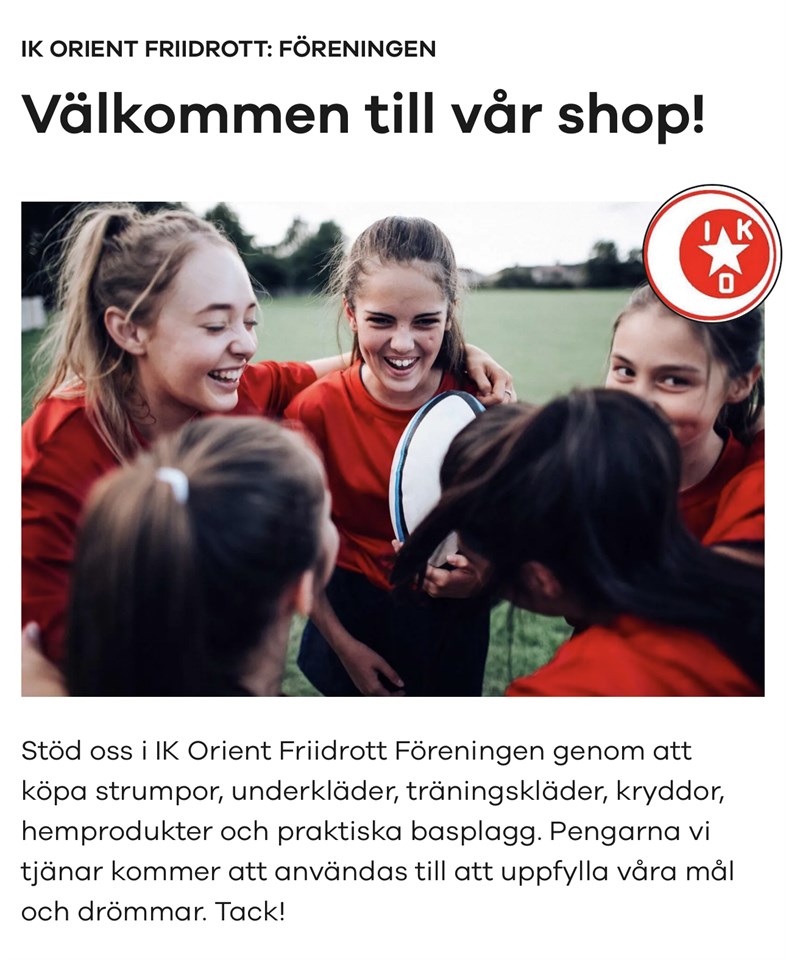 Hej alla! Stöd oss i IK Orient Friidrott Föreningen genom att köpa strumpor, underkläder, träningskläder, kryddor, hemprodukter och praktiska basplagg. Pengarna vi tjänar kommer att användas till att uppfylla våra mål och drömmar. Tack! Tänk på att försäljningen endast är öppen till och med 3:e November! Följ länken för att shoppa loss på Newbody. https://www.newbodyfamily.com/sv-se/shop/s/TFNGNWW/FONKXO?ut=1_206 Tillsammans gör vi skillnad!