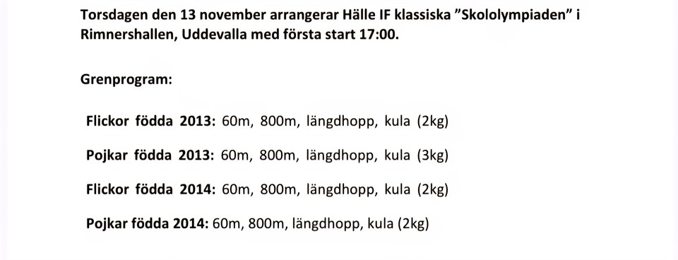 Heter höstkampen för er som är födda 2015 (tävlar i FP11 nu från inomhussäsongen börjar) och Skololympiaden för er födda 2014.