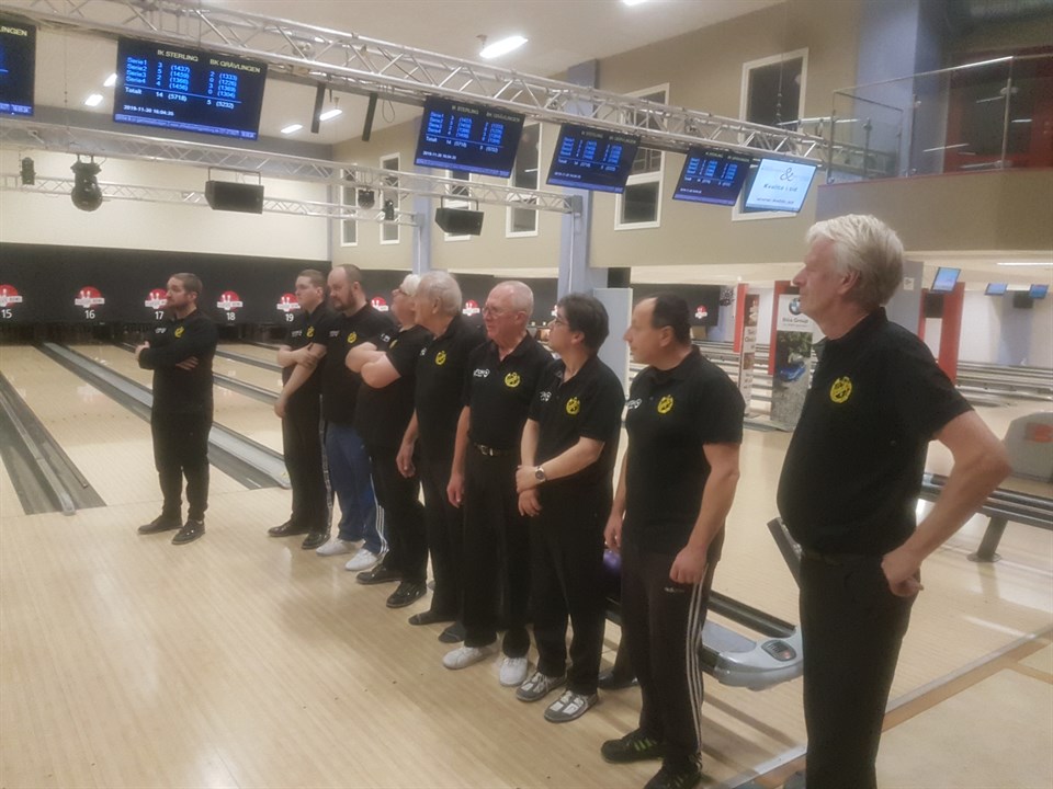 2020-01-11 Match nr 1, BK Turbo F v/s Sterling F2 Matchen går av stapeln kl. 10:00 i Hyltebruks bowlinghall som är en 4-banors hall. Mycket trevlig liten hall helt nyrenoverad och bra banor att spela på. Inga större problem med allsvenskan 41. Vi började ganska knackigt i första serien och förlorade med 3-2 och anade att det skulle bli en tuff match. I andra serien så höjde alla gubbar sig rejält och vann med 1-4. Serie 3, Oops! Här smäller vi till med en 0-5 seger med höga banpoäng. Sista serien spelar vi lite lugnare och vinner med 2-3. Total: 6-14 Kägelpoäng 5110-5470 Spelare över 700; Bernt B 753, Johan B 729. 2020-01-11 Match nr 1, BS Bockarna F v/s Sterling F2 Varbergs Bowlinghall matchstart kl. 16:00. Förväntningarna var väl inte de bästa då bockarna är serieledare. Men tanken blev då att gå ut och spela avslappnat vilket gör att vi höjer oss rejält och våra kägelpoäng blir 1441, 1323, 1446, 1496 totalt 5706. Detta trots att oljeprofilen 38 fot en hemmasnickrad variant som det tog tid att lista ut var spelet skulle ligga. Bockarna fick faktiskt kämpa i de första 3 serierna för att bevisa att de är bäst. Resultatet 14-6 Värt och nämna är alla över 700; Roger E 814, Peter L 788, Sven-Arne J 774, Bernt B 751, Johan B 719 riktigt bra spelat!