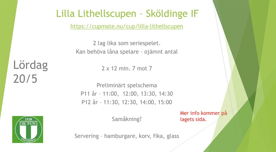 Information gällande Lilla Lithellscupen. - UPPDATERAD