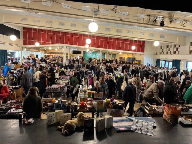 Det var fullt med säljare som fyllde ca 100 bord med loppisfynd i Entrehallen på "Stora Träffen" samt den närliggande lokalen Hjorten.