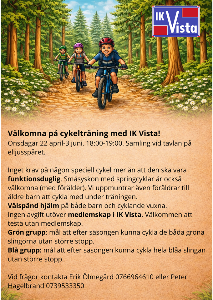 Fyll i din e-postadress för gratis uppdateringar om IK Vista Cykel