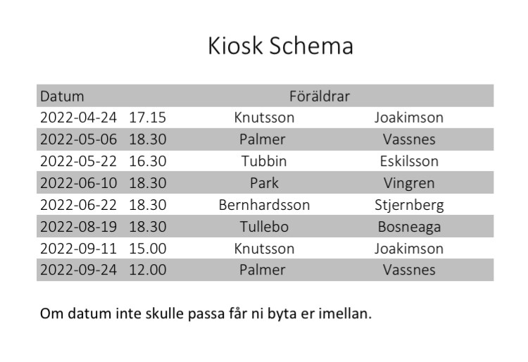 Kiosk Schema hemma matcher P09 24 apr 2022 3kommentarer