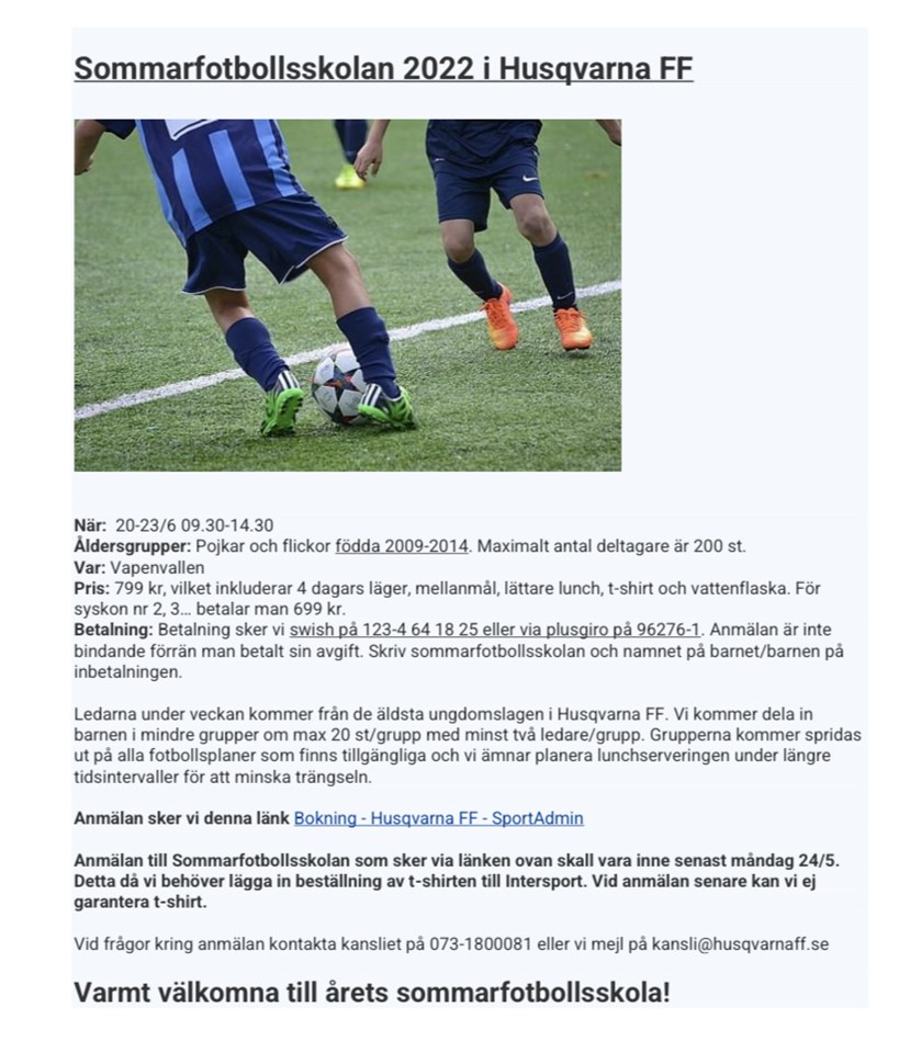 Hej, dela bara info om sommarfotbollsskolan hos HFF. Mvh Joe P09 3 maj 2022 0kommentarer