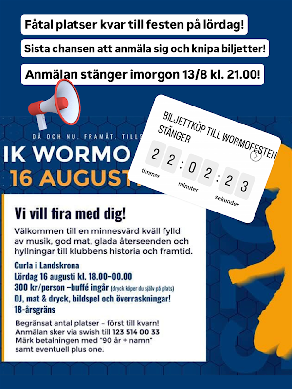 Klicka på bekräftelselänken i det mejl vi skickat dig för att börja ta emot uppdateringar från IK Wormo.