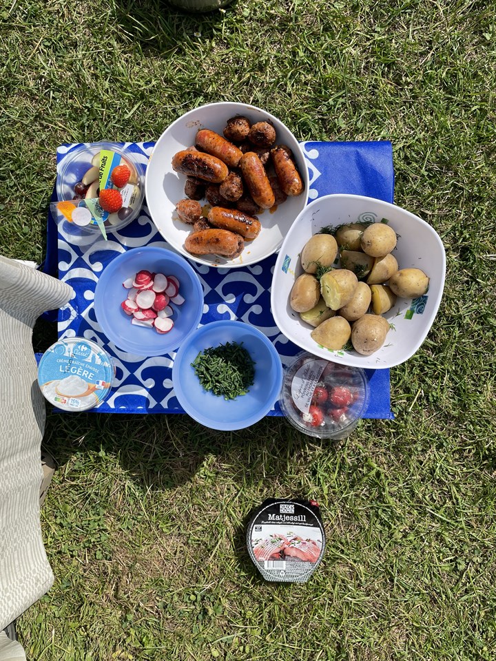 Lyckades hitta franska köttbullar, potatis och matjessill. Chorizokorv, dill och rädisor. Träna på, ha en bra sommar!!