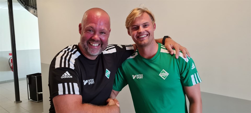 Inför höstsäsongen så har det blivit klart med ett nyförvärv då anfallaren Victor Stranne ansluter till A-truppen. Victor har precis avslutat sin värnplikt och väljer nu att återuppta sitt fotbollsspelande i Zenith. Innan värnplikten spelade Victor i Torslanda som också är hans moderförening. Han gjorde där A-lagsdebut redan som 15-åring med ett inhopp mot Tidaholm 2019. Som 17-åring lämnade Victor Torslanda för att ansluta till BK Häckens ungdomsakademi, men förra året återvände han till Torslanda och spelade med dem förra säsongen fram till dess att han påbörjade värnplikten efter sommaren. Vi är väldigt glada att Victor nu ansluter till oss i IK Zenith och hoppas få se Victor ta steg i sin utveckling som en skicklig anfallare. Välkommen till Zenith Victor! På fotot ser vi Victor tillsammans med Zeniths sportchef Martin Olsson