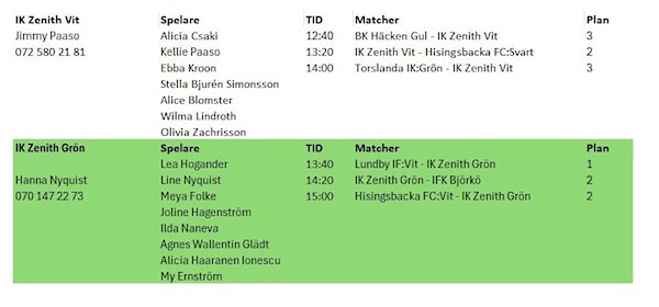 Samling: 30 min innan 1:a avspark vid fotbollsplanen