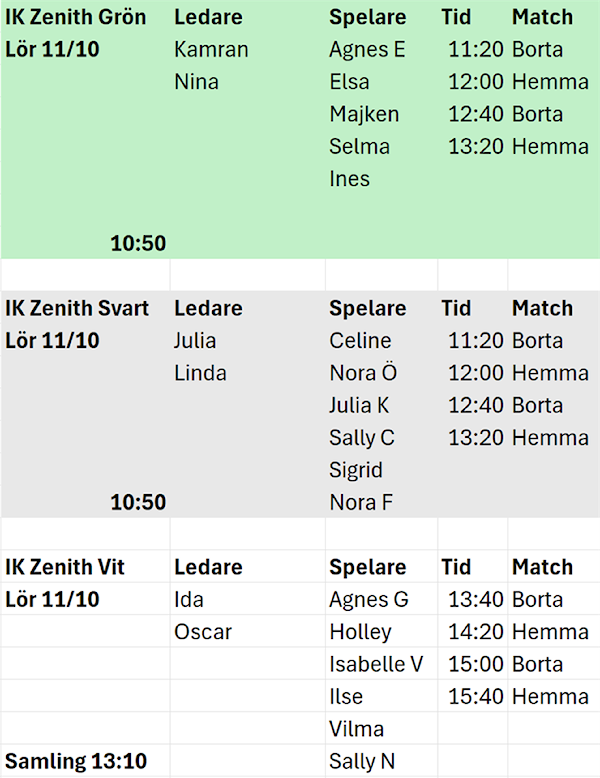 Vi har gjort lagindelning på de som anmält sig, så vi blir totalt 3 lag som ställer upp från Zenith F2019. Se bifogad bild.