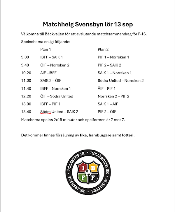 Klicka på bekräftelselänken i det mejl vi skickat dig för att börja ta emot uppdateringar från Infjärdens SK F-16.