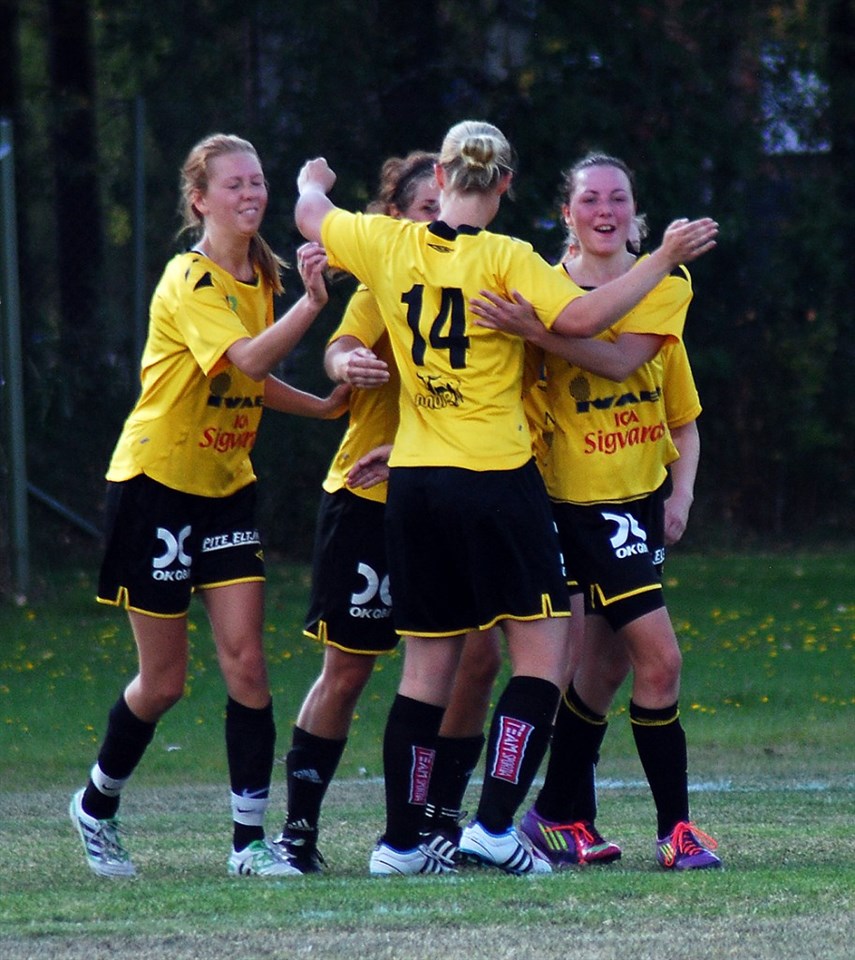 Efter en ledning med 2-0 känns det lite bittert med ett resultat på 2-2. Dock måste vi se till hela matchen och känna oss oerhört nöjda. Visst svider det då motståndarna kvitterar då det enbart återstår 30 sekunder, dessutom på övertid. MEN åter igen gör vi en fantastiskt bra match. Tjejerna springer och dom springer och dom springer, inte konstigt att flertalet ben stummar efter 75 minuter. Det var länge sedan jag såg den här viljan, den här glöden hos tjejerna. Fasiken vad kul det var att se! Springer man (rent ut sagt) skiten ur sig då är det ok att man inte orkar. Huvudsaken är att vi gjorde allt vad vi kunde, och det känns verkligen så. Idag får alla ett stort beröm. Kul att bland annat se Frida Öberg avlossa flertalet fina skott i första halvlek. Evelina gjorde fina kombinationer tillsammans med Nina, Cajsa och Frida på offensiven. Som även resulterade i mål ... Blev även imponerad av Jennys hungriga spelstil! Fanns så oerhört mycket positivt att säga denna match. Se tillbaka till matchen kommer ni hitta en massa fina moment att minnas.