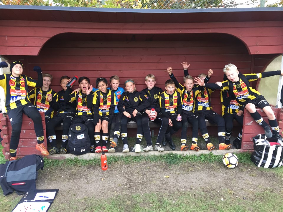 Det var några rejält trötta killar som satte sig i bilarna hem efter två dagars cup i Uppsala nu i helgen. Ekebycupen var vår första 9-mannacup och det var även lagets första 9-mannamatcher överhuvudtaget. Det som framförallt skiljer 9-manna mot 7-manna, förutom antalet spelare på plan, är planens bredd som är väsentligt större. Detta skapar förutsättningar för att spela mer med vändningar och man får ofta lite mer tid med bollen. 9-manna innebär också att vi spelar med offside vilket killarna klarade alldeles utmärkt. Ekebycupen är en breddcup och vi gick in med inställningen att helgen skulle vara träning, både för spelarna och för coacherna. Killarna ville betydligt mer än så och vi inledde med en fin 2-0 seger mot Boo. Vi spelade riktigt bra där vi släppte boll snabbt och kunde skapa massor av chanser genom matchen. Det märktes direkt att killarna gillade de större ytorna som den större planen ger. Nästa match var en rejäl utmaning där vi ställdes mot Uppsala IF som mönstrade ett riktigt bra lag. Vi stod upp fantastiskt bra och kunde gå stolta därifrån trots 1-3. Sista matchen på lördagen var mot Unik IF och här fick killarna spela ut hela registret och kunde vinna med 7-2. Många olika spelare tog chansen att näta vilket var extra roligt. Söndagen innebar match mot Sollentuna där vi gick segrande ut med 2-0 och sista matchen spelades mot Gävle där vi hade svårast att få till vårt "stora" spel utan fastnade i ett kortpassningsspel som inte skapade speciellt mycket. Kul att vi lyckades vända 0-1 till slutresultatet 1-1. Som helhet var cupen mycket lyckad där 15 killar fick spela en hel del fotboll och samtidigt ha kul med kompisarna. Som ledare kändes hela helgen lugn och harmonisk mycket tack vare att killarna verkligen skötte sig föredömligt och också visade hur kul dom tycker det är att spela fotboll! Syftet med cupen var att träna och lära vilket vi alla gjorde samtidigt som tillresta föräldrar i publiken fick se massor av fin fotboll från våra duktiga killar! Tack för den här helgen!! /Mattias, Robban, Erik o Tomas