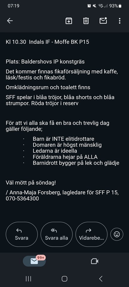 Samling 10.00 på Baldershov. Var noga med parkeringsbetalning, de kollar bilarna ofta där. Glöm inte matchkläder med blå strumpor - För dem som inte hämtat ut eller fått ännu kommer tröjor att tas med. Laget Nils - Ronny - Linus - Elis - Liam - Tore - Sixten - Albin - Jack - Folke - Erik - Adrian - Norton Väl mött! P15 9 maj 2025 0kommentarer