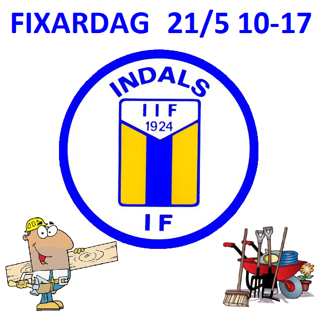 Förbered er att den 21:a maj är det obligatorisk fixardag för Indals IF's medlemmar. Listor kommer att skickas ut vilka tider som respektive lag skall närvara vid. Såklart får man jobba hur mycket man vill den dagen. Kan man inte den dagen får man hjälpa till före eller efter. Det finns gott om sysselsättningar. Multiarenan skall oljas. 11-manna båsen skall målas. Snickras och lagas. Röja runt multiarenan. Klippas häck. Sopa längdbana och hörnet. Rensa ogräs hoppgrop. Tvätta 11-manna målen. Kolla över och ev laga näten på alla mål. Fixa med staketen runt plan. Röja diken. Plantera blommor i blomlådor. Städa alla kansliets rum. Städas och röjas överallt ute. Plocka skräp. Det skall inventeras inför säsongen. Plus mycket mycket mer. Ta gärna med egna krattor och verktyg om ni kan. Olja färg penslar köps in.