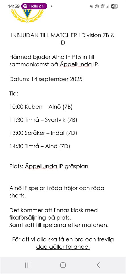 Info om matchen på söndag. P15 12 sep 0kommentarer