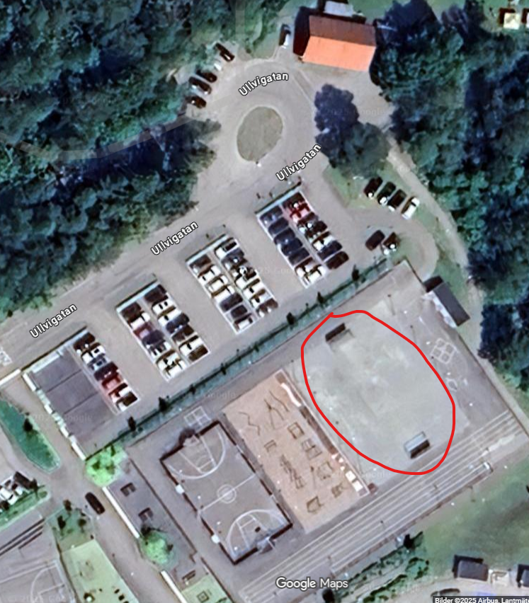 Träningen görs på grusplanen i anslutning till parkeringarna vid Ullviliden IP, se bilden.