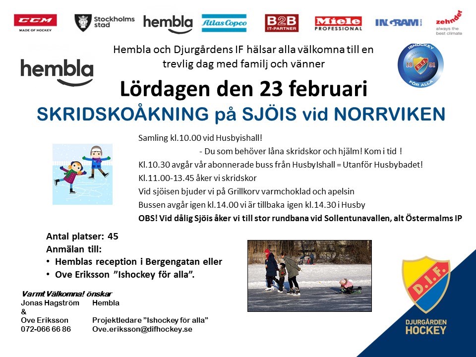 Alla familjer, barn och ungdomar välkomna åka skridskor Ute Lördag 23 februari Ishockey för alla 20 feb 2019 0kommentarer
