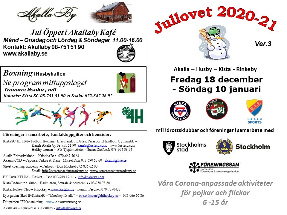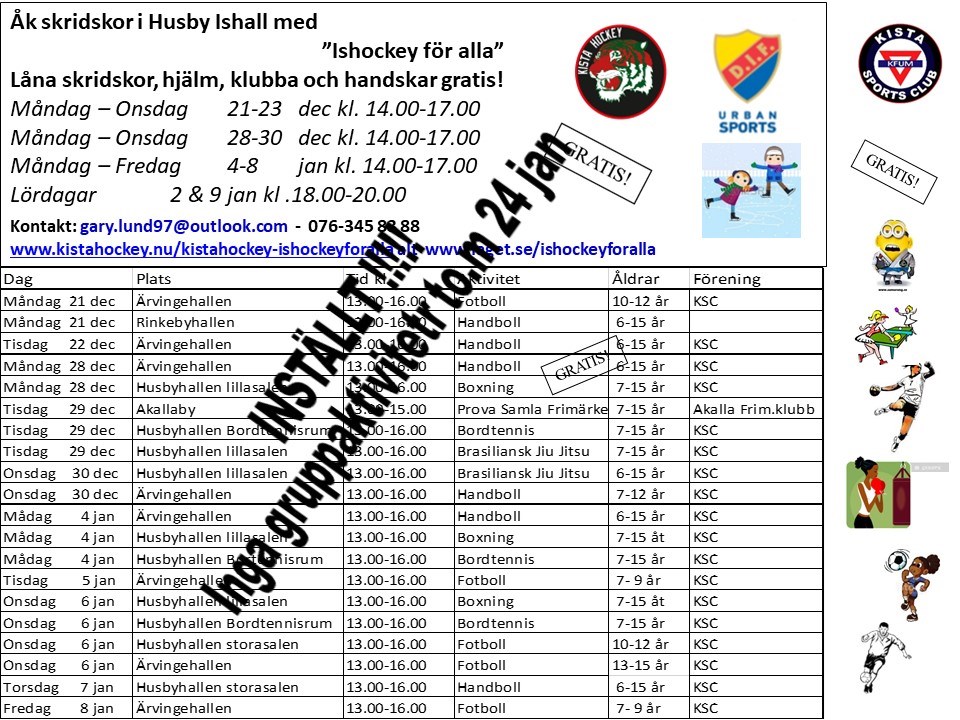 Alla barn och ungdomar 4-15 år välkomna åka skridskor under Jullovet! Varmt Välkomna! Ishockey för alla 12 dec 2020 0kommentarer