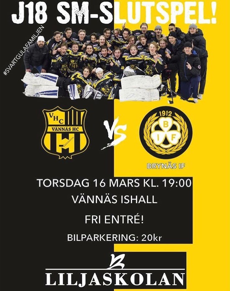Hej Imorrn spelar Vännäs J18elit mot Timrå i jakten på SM guld. Matchen börjar 19.00 Gratis inträde! Kom och heja! J18 Div 1 8 mar 2017 0kommentarer
