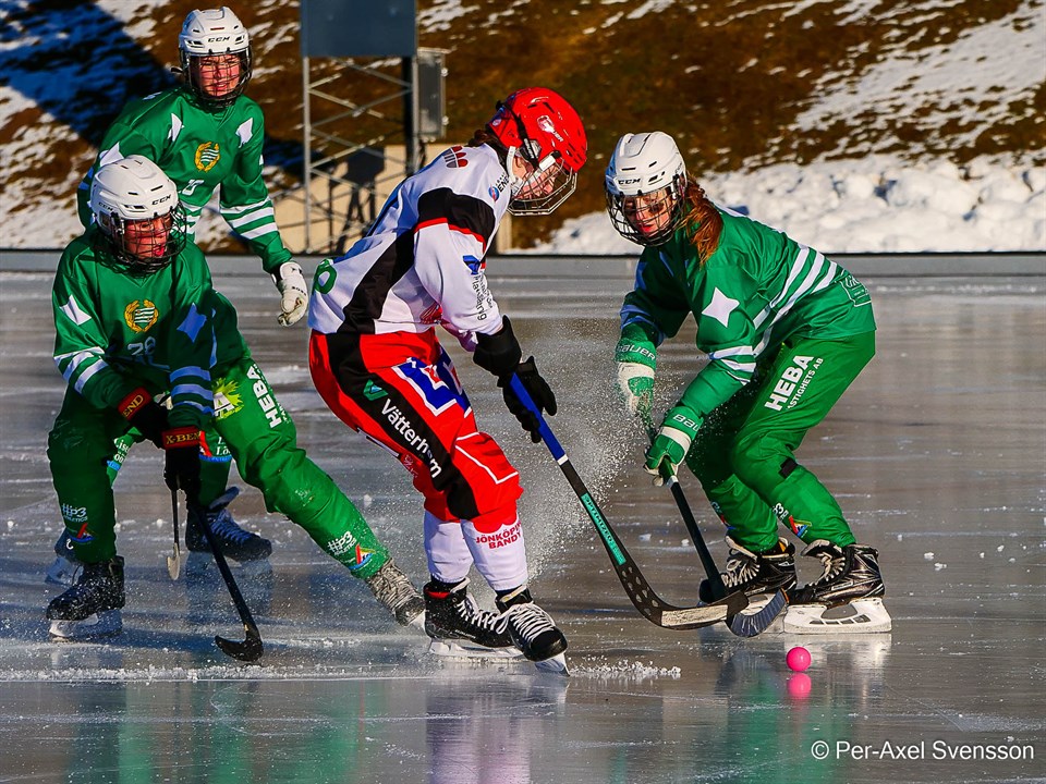Det var en spännande match där JB Dam i matchens 93 minut kvitterade till 4-4 och därmed räddade en poäng. Jämnt mellan lagen som ligger bredvid varandra i tabellen och en härlig bandydag! Hammaby chocköppnar! Ja om det var solen eller energin var låg ellernått annat låter vi vara osagt då Hammarby drog direkt iväg till 0-3 som var ställning i halvtidsvilan. 0-1 kom redan i matchens femte minut på hörna - kanske var det det som satte tonen? I andra halvlek kommer JB igång och äter sig i matchen. Bananer i halvtid och lite dricka gjorde nog susen? JB når 2-3 och har känning på kvittering när plötsligt från klar himmel Hammarby gör 2-4. Men #7 Anna Nilsson lät bössan tala på två hörnor denna dag och JB når 3-4 och det är "hur spännande som hest"! JB har ytterligare en boll i mål som blåses bort pga av nått... I andra halvlek är det bra mycket energi i laget och JB spelar upp sig markant. Time out JB i minut 86 Snacka om genidrag, eller åtminstone bra valt ...i minut 86 tar JB-ledningen time out och JB lyckas får till en hörna i minut 93. #7 Anna Nilsson har dundrat in ett par hörnor i år och här kom den som gav 4-4. Jubel förståss! Sett över matchen så var det ganska ok för båda lagen, men JB var förståss värda två poäng.... Heroisk insats mot tabelltvåan Sunvära förra helgen Förra helgen åkte JB Dam till Sunvära för spela med endast 10 spelare d v s inga avbytare och en spelare mindre hela matchen. Och som JB Dam gör det! Vi har sett det tidigare hur JB Dam liksom "biter ihop" och jobbar långsamt, metodiskt och trygg, särskillt i matcher när man är kort om spelare. Mot Sunvära - som ligger på andra plats i tabellen Allsvenska Dam Södra - stod inget att göra men förlust 4-2 var minsann inte fy skam! Faktiskt samma resultat som hemma på Råslätt IP vid första mötet. Om JB Dam kan hålla samma styrka genom alla matcher så har vi en god prognos framåt. Nästa säsong - då så! Nu återstår Vänersborg hemma och Västerås borta kommande helg som vi hoppas kunna genomföra innan säsongen lider mot sitt slut! Se matchbilder på Peax FAcebook (bläddra ned en bit) Matchdetaljer på Elitrapport HÄR Foto: Per-Axel Svennson (PEAX)