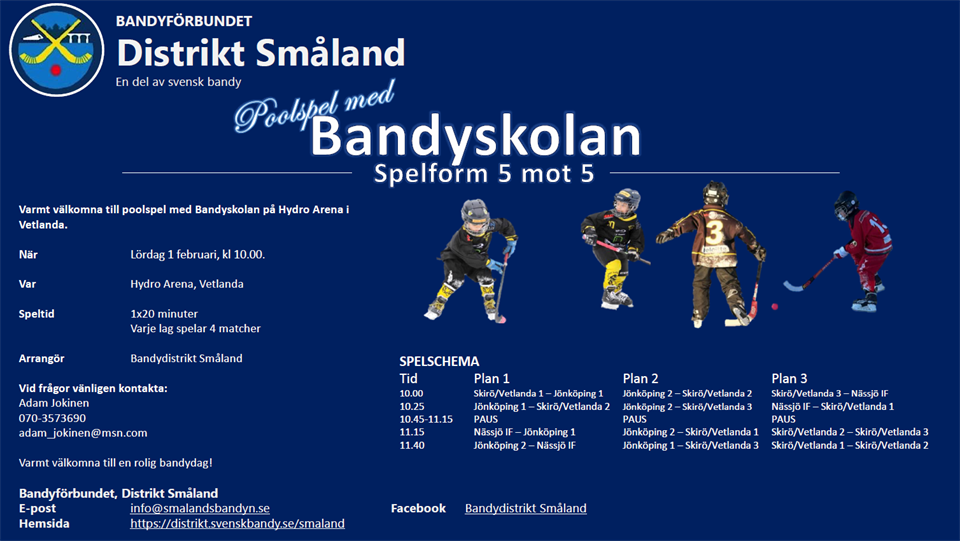 Spelschema för dagen finns bifogat. Vi samlas på plats i Hydro Arena kl 09.45 för lite taktiksnack, lagindelning och ombyte.
