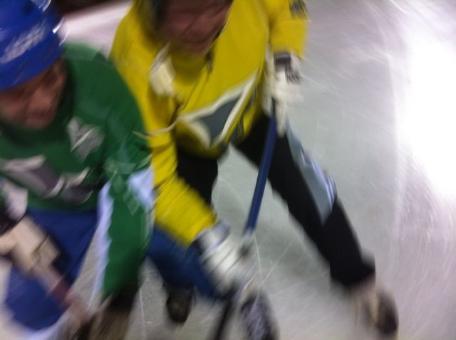 Turdagen fredagen 13 januari var vi 10 pigga gubbar som lirade med nystanet. Gula laget vann och Einemo lyckades på något sätt göra fyra av sju mål. Hur detta kunde hända var det flera spelare som funderade på. - Han hade medvind hela tiden, säger en svettig deltagare i sina bästa år, som vill vara anonym. Några andra spelare konstaterade att det är omöjligt att hela tiden ha medvind, men eftersom det inte finns några krav på att man är smart för att få vara med och lira, så kan dylika kommentarer dyka upp. Alla var dock ense om att denna blåsiga fredag var en riktig turdag - vi var pigga, starka och vi fick förmånen att lira bandy på nyspolad is. - Så här skulle man ha det när man har det som sämst, sa Bengt Z och satte sig i bilen för att åka de 11 milen hem till Bollebygd. På bilden ser du Anders Wardh och Nicklas Einemo i en oschysst kamp om bollen. Precis som vanligt, när Einemo är inblandad, med andra ord.