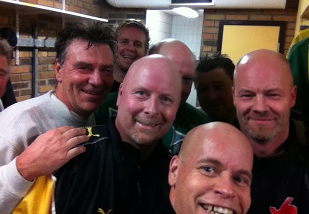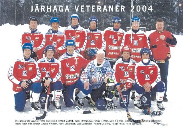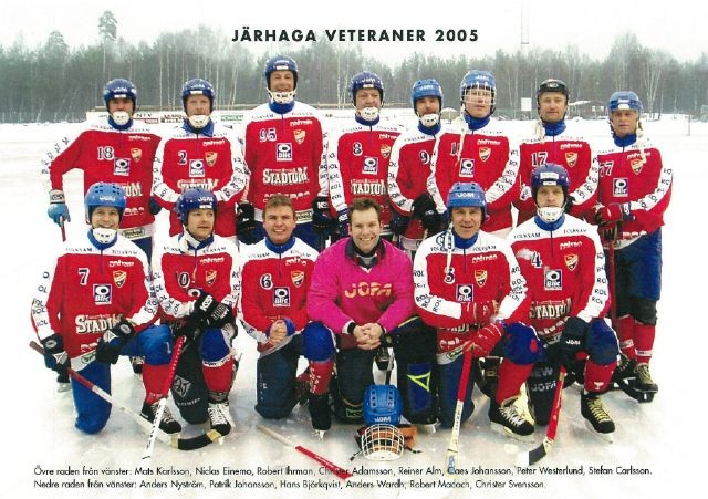 Fredagen den 2 december var vi åtta stycken virila veteraner på träningen. Längst ut i vänstra bildkanten syns Bengt Zagerholm, firad stjärna på 70-talet, som åkt ända från Bollebygd för att vara med och träna. Övriga på bilden, från vänster: Robert Madach, Peter Kindh, Niclas Einemo, Henrik Sporrong-Esbjörnsson, Anders Nyström, Peter Carlsson och Kent Henriksson. Att A-lagets tränare, Kent Henriksson, var med på plats visar vilken kapacitet som laget har och vilka förväntningar som klubbens ledning har. Allt annat än seger i DM kommer att betraktas som fiasko. Men det är ju som de kloka säger: bollen är rund, och i bandy kan allt hända. Men visst ser det bra ut?!