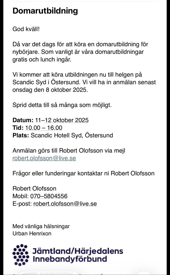Hemmamatch mot Duved | 26 okt, 17:00 |