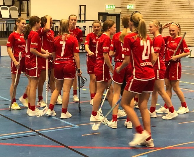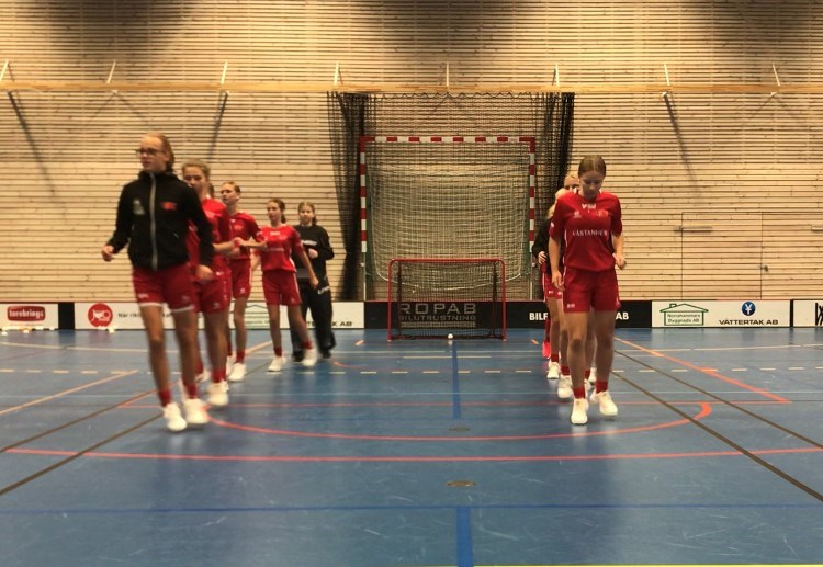 Denna soligt fina höstdag fick vi bocka av en ny arena på vår bucket-list, Tinas Ö i Värnamo. Det tog ett litet tag innan tjejerna vande sig vid det något hårda och studsiga underlaget, men det var inget som störde alltför mycket. Idag var första gången vi kom till spel med 3 hela femmor, och vi gav formationerna lite olika taktiska direktiv som de uppfyllde med bravur. Värnamo hade för dagen problem att få tag i en mv och hade därför lånat in en äldre mv (-04), vilket vi accepterade för att slippa ställa in/flytta matchen. Det var dock inget vi berättade för tjejerna före matchen. Vi pratade dock om att de hade en stor mv och vi var tvungna titta upp och söka luckorna, samt försöka få förflyttning mha diagonalpass och direktskott. Värnamo satte hög press med tufft fysiskt spel men när vi kom loss från den fanns stora ytor att spela upp på. Ganska tidigt fick vi ett ledningsmål, men redan bytet efter var det kvitterat. Det dröjde dock inte länge innan vi återigen tog ledningen och dessutom kunde utöka ledningen innan paus med matchens delikatess, där bollen gick som på ett snöre mellan tjejerna innan Filippa L. med en öppnande diagonalpassning hittade en fristående Siri som drog till med ett direktskott i öppen kasse. Vi hade bra kontroll på spelet och använde hela laget fint i anfallsspelet, men var tvungna att hela tiden vara vaksamma på Värnamos rakare och längre kontringsspel. Återigen startade Värnamo piggt i andra och fick en tidig lyckosam reducering på ett långskott från halva plan där Nova var skymd. Vi är dock trygga i vårt passningsspel och fortsatte spela vårt spel vilket till slut ledde till utökad ledning med 2-4 i mitten av ande perioden. Sista 5 minuterna av andra drog vi på oss 2 utvisningar i följd och fick öva lite på box play också, vilket vi gjorde superbra, och höll långa stunder i bollen och ”dödade” tid. Bra träning! Sista perioden kändes som vi hade bra kontroll på matchen även om det målmässigt fortfarande var jämnt. Redan efter 1 minut kunde Agnes W. på egen hand utöka ledningen till 2-5 med en bollvinst på mittplan efter bra utförd press av hela femman, och driva fram med boll genom mitten och avlossa ett kontrollerat skott intill stolpen. Vi fortsatte skapa många fina chanser men lyckades inte få in fler mål. Stundtals var det lite tuffa dueller även idag, men trots att några tjejer åkte på ett par tuffa smällar som kändes så var det inget gnäll och vi blir bättre och bättre på att själva delta i det fysiska spelet och inte bli passiva och vika undan. Vi är ännu inte på vår absoluta topp, och har en hel del saker att fortsätta jobba med, men vi har ett härligt go i laget nu, många tjejer på träningarna och det gör att vi hela tiden tar kliv framåt i vår utveckling. Fortsätt så, tjejer!