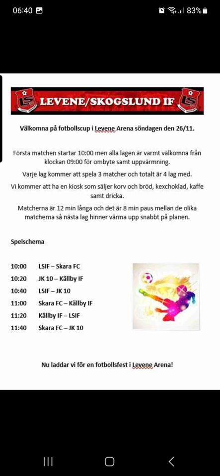 Hej på er? Nu närmar sig december och då har vi ju några evenemang som ska bemannas. Först ut är garderoben på lumer och karle. Vi har fått fredagen den 15 december att bemanna. Vi behöver 3 personer mella kl 17 30- 21 00 Och 2 personer 21 00- 01 00. F-12-13 17 nov 2023 0kommentarer