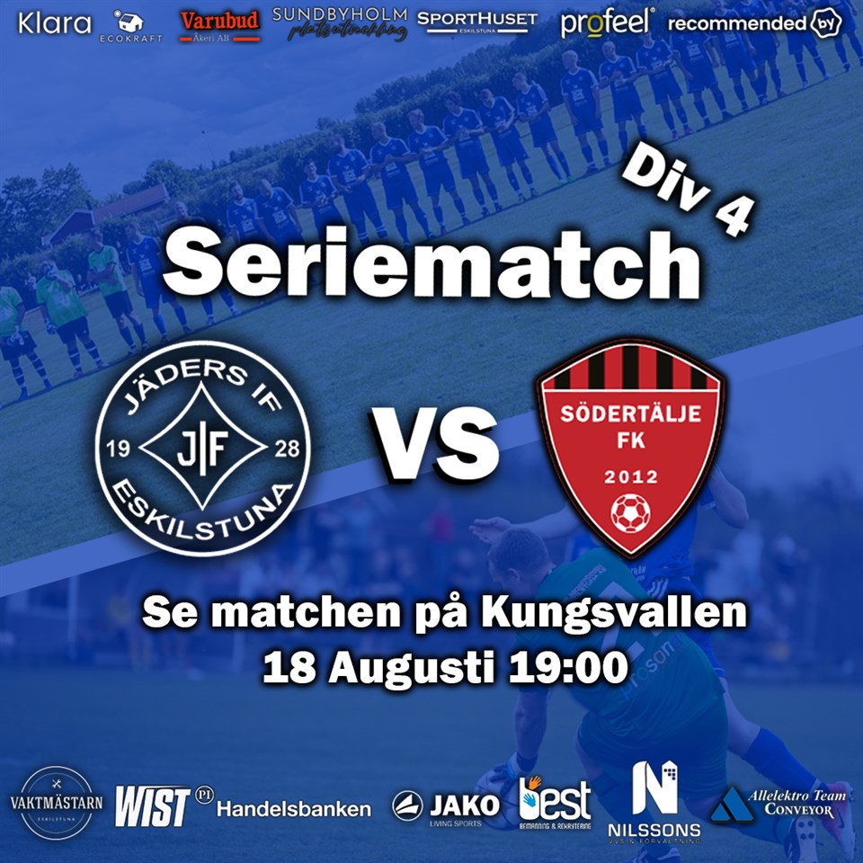 Dags för ny hemmamatch! Denna gång är det Södertälje FK som kommer på besök. Vi hoppas kunna ta revansch för bortaförlusten i våras. Varmt välkomna ner och stötta! Grillen är tänd och vi hoppas att många vill bidra till atmosfären. Vi ses på Kungsvallen!