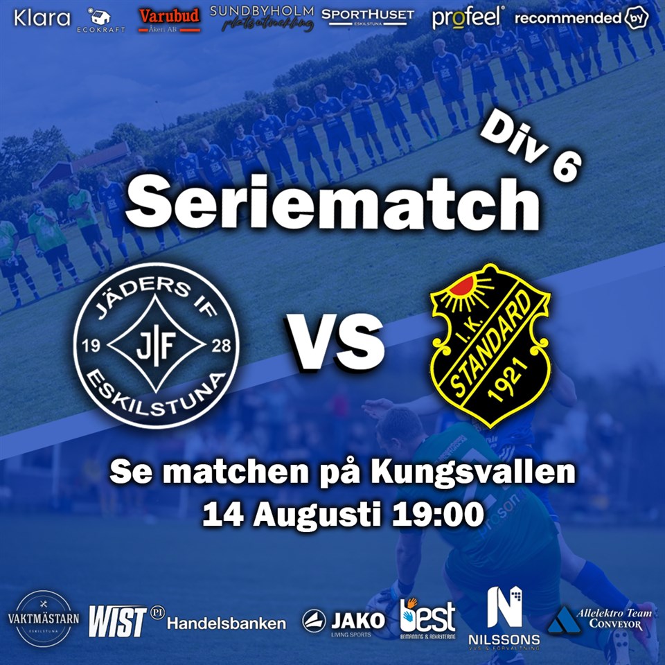 Dags för återstart även i division 6 där vi gästas av IK Standard. Återstarten i division 4 slutade med en sur 2-1 förlust efter en obegriplig och rejält kontroversiell domarinsats. Vi hoppas på bättre nivå ikväll och även stort publikstöd! Varmt välkomna 💙