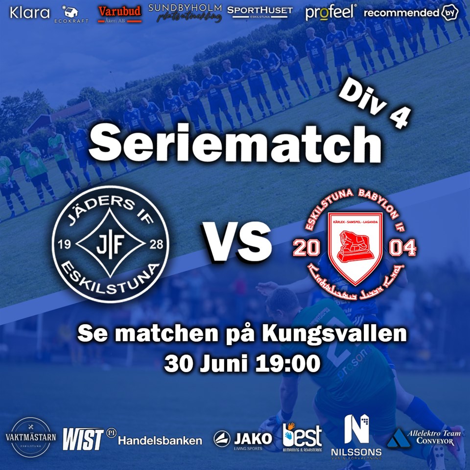 Nytt lokalderby! Denna gång är det Eskilstuna Babylon IF som besöker Kungsvallen. Motståndarna parkerar just nu på en andraplats i tabellen och kommer säkerligen att bli en svår nöt att knäcka. Vi siktar på att hålla i vår fina form och ta ytterligare en trea! Grillen är tänd och förhoppningsvis blir det storpublik. Varmt välkomna! 💙 A-lag Herrar 29 jun 2023 0kommentarer