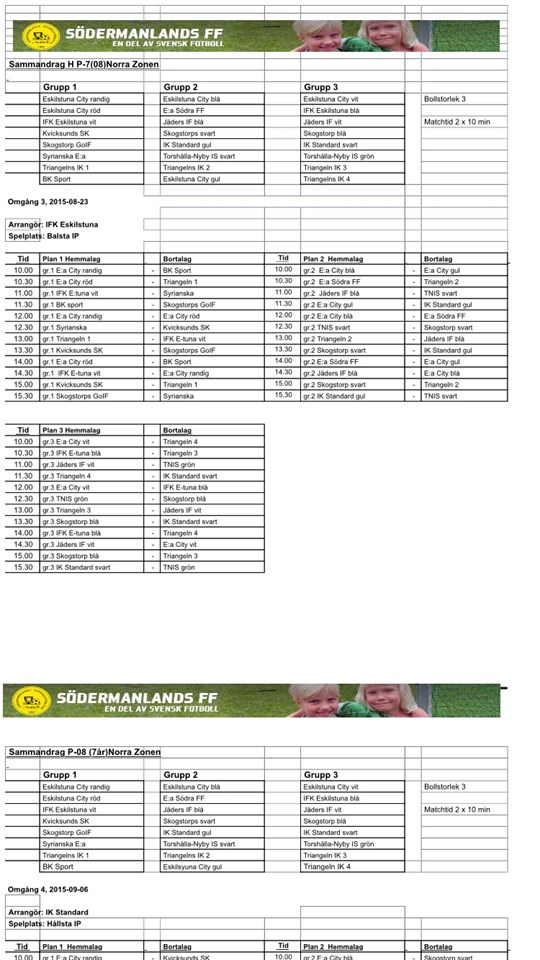 Hej Även våra 08 har sammandrag på balsta. Samling kl 10 på kungsvallen. Första match kl 11( bifogar spelschema) Jag och Magnus är bortresta så Hampus mamma Stina Söderström kommer vara ledare. Anmäl er till henne så fort som möjligt om ni kan deltaga eller inte. 073-512 17 14. Det behövs också fler föräldrar som hjälper till under dagen, anmäl även er till Stina Hoppas på en fin fotbollsdag:) //Fredrik Magnus Stina P19/Herrjuniorer 18 aug 2015 3kommentarer