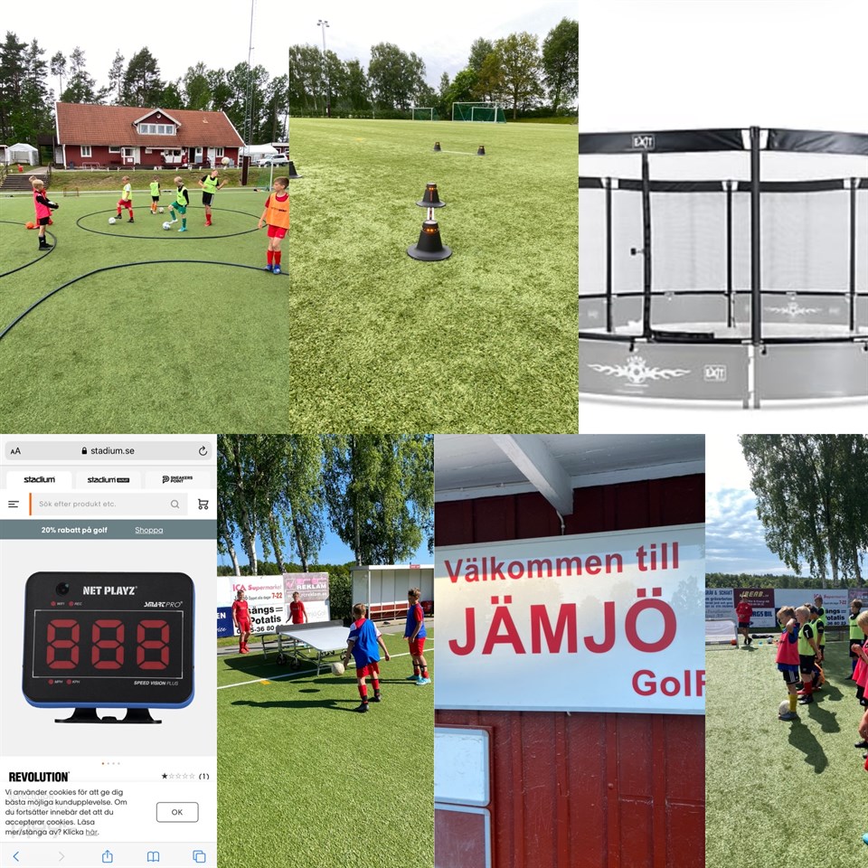 Jämjö Goif Fotbollsteknikpark ska inspirera till mycket spontan spel på fritiden för såväl gamla som unga. Vi använder teknikutrustningen i föreningens ordinarie lagträningar. Målet med fotbollteknik parken är: - Jämjö Goif vill få fram bolltrygga och tekniska spelare med bra bollkontroll och en bra 1:a touch. -Erbjuda andra föreningar träningsmöjligheter i teknikparken. -Erbjuda spelarna möjligheter till individuell träning där man ska få unika möjligheter att utveckla sina färdigheter som snabbhet, bollkontroll, fysik, 1:a touch, skott, precision och speluppfattning. -En bättre folkhälsa då parken ska kunna användas av alla såväl unga som gamla då IP är öppet för alla. -Spontanfotboll och lek. -Fotbollsfitnes. en rolig träningsform för alla. Jämjö fotbollsTeknik park utrustning 1. teqball bord 2. fotbollstennis 3. 2 stycken minirinkar för 2-2, 3-3 spel. 4. 1 Panna Arena en rund plan med sarg där du spelar 1-1.2-2. 5. Bollplank Ska byggas i höst 6. Mobila rebounder 7. Mobil teknikbana 8. Mobil frisparksmur på hjul 9. Smartgoals för att träna reaktion, snabbhet och speluppfattning 10. Skottdukar i femmannamål och sjumanna-mål för att träna precisionen. 11. Hexagon Vi kommer bygga 4 stycken hexagoner på 3m i diameter, som är flyttbara. Hexagonen är till för att träna upp footskill, med snabba passningar mottagning med 180 graders vändning, passning, mottagning, rörelse i olika vinklar. Flera hundra tillslag på några minuter. Hexagonerna är lätta att flytta och ska vara ett hjälpmedel i träningen. 12. Rondoringar träna upp kortpassningsspelet på liten yta. Bra 1-a touch och ta snabba beslut.