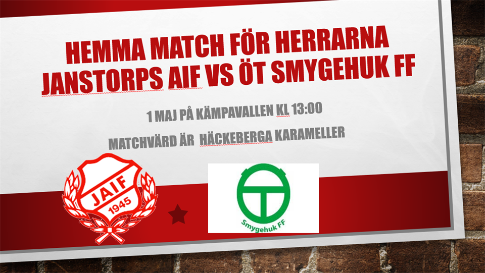 • Ny hemmamatch för våra herrar den 1 maj kl 13:00