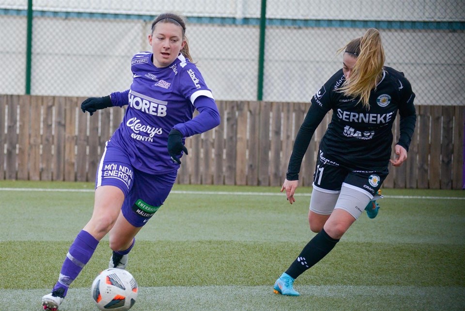 1-1 blev det borta mot Alingsås efter att Jitex kvitterat precis i slutet. Efter en mållös första halvlek tog Alingsås ledningen sent i andra. I 81:a matchminuten gjorde Pernilla Milton 1-0. Tio minuter senare kvitterade Jitex genom Sofia Reidy, i den 91:a matchminuten. — Vi går upp och forcerar i slutet och försöker få fram en hörna. Det lyckas vi med och sedan är vi heta i sraffområdet och Sofia trycker in den, berättar tränare Kajsa Tornfalk. — Vi är verkligen förtjänta av minst en pinne, så jag är jättenöjd, speciellt med tjejernas inställning och hur vi står upp och tar oss an matchen, fortsätter hon. Hon tycker att resultatet speglar matchen rättvist, där båda lag har sina delar av matchen. Det är alltid mycket känslor och tuffa dueller mot Alingsås – och så även idag. — Mycket kamp och inte alltid skönlir, men det är fantastiskt att få komma hem med en pinne. Jitex klarade sig dessutom precis undan en förlust – bara minuter efter kvitteringen gör Anna Larsson en jätteräddning och undviker 2-1 till motståndarna. Nu blir det välförtjänt påskvila och lätt träning på söndag – och på måndag är det dags igen, då Lidköpings FK kommer till Åbyvallen. — Det är ett tight schema, så nu får vi hem och ladda batterierna och umgås med nära och kära innan det är match igen, säger Kajsa. Foto: Mats Andreasson.