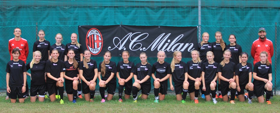 Jitex - AC Norddjurs (DK) 3-1 Jitex - Kvissel/Ravnshøj IF (DK) 5-0 Efter en lång resa som startade på småtimmarna på söndag morgon kom vi till Milano och fick träna med två tränare från AC Milans ungdomsakademi. Det väckte en del uppmärksamhet när tjejerna steg in på träningsplanen och sedan visade sig ha tiktigt bra bollkontroll och bra tempo i det avslutande 11-mannaspelet. Efter att redan varit vakna sedan kl 3 på söndag morgon, 12 timmar innan, skall det tilläggas. Idag vaknade vi upp till en ljus morgon och tyckte oss se blå himmel ovanför. Men när det var dags för dagens första matcher så kom ett rejält åskväder samtidigt som himlen öppnade sig. En timme senare fick vi bege oss till en konstgräs plan där vi i två matcher direkt efter varandra vann båda mot danskt motstånd. Imorgon lovar väderprognosen bättre väder och då väntar finskt och danskt motstånd. Vi saknar tyvärr en spelare på bilden som var förkyld och stod över träningen.
