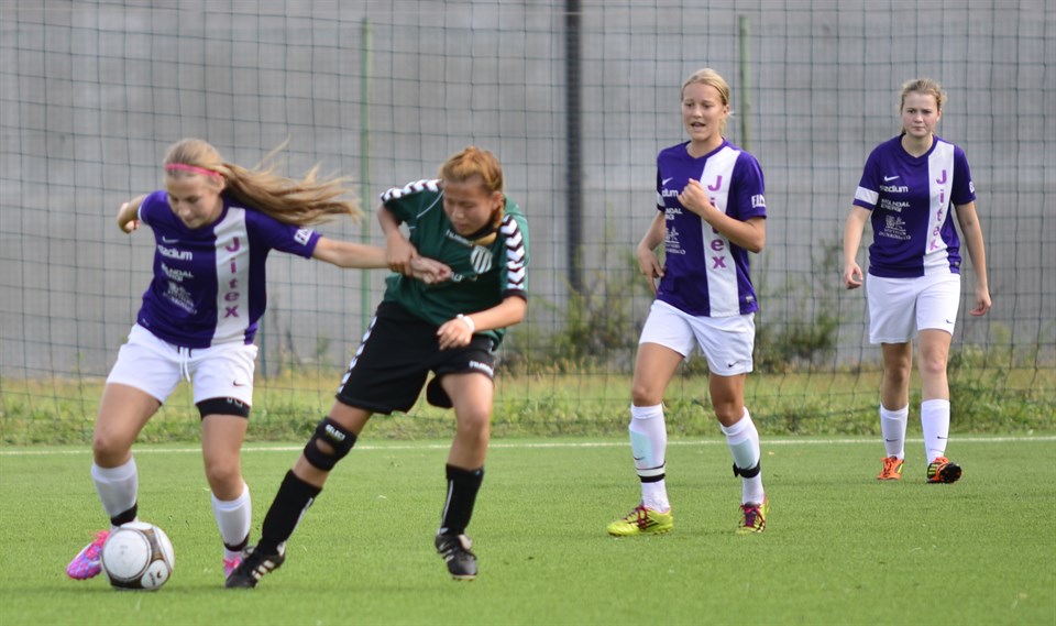 Jitex F99 - PEP Girls (FIN) 6-0 Jitex F99 - Vipperöds BK (DK) 1-1 Så kom solen till Garda men pga av måndagens regn fick vi bege oss 20 km med buss till St Ambroglia Valpolicella för att spela tisdagens två matcher. Idag ett riktigt fint konstgräs i klass med planerna hemma i Göteborg. För motståndet idag stod ett finskt och ett danskt lag som båda kom med var sin vinst från måndagen. I båda matcherna får vi en lysande start med ledningsmål efter 2 minuter och i första matchen mot finskorna rullar det på och slutar med 6-0 seger. I den andra matchen formerade danskorna mur bakåt och har samtidigt har de en duktig tjej frammåt som oroar. Vi har flera bra chanser men istället för fler mål frammåt blir den en kvittering när danskornas toppforward smiter emellan back och målvakt och kan rulla in kvitteringen. Trots allt obesegrade i gruppspelet och final på onsdag mot något av dessa två lagen. Nu har också alla i truppen varit med och spelat trots lite förkylningskänningar. På eftermiddagen blev det en promenad i Garda med bad i Gardasjön och glass. En skön omväxling till fotbollen när solen tittade fram.
