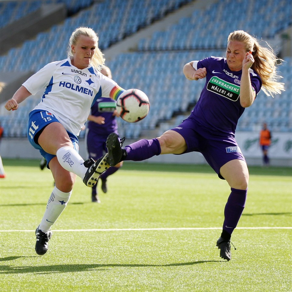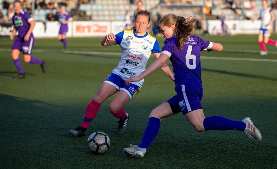 Onsala BK och årets hemmaderby var kvällens uppgift, Onsala som innan match låg en poäng före Jitex i tabellen och senast slog Mariebo med 3-1 på hemmaplan. Hos gästerna fanns i startelvan Elin Berntsson som spelade med Jitex 2017-18 och Mikaela Utas som gjorde någon säsong i Jitex under senaste tiden i allsvenskan. Laget som startade idag var Hannah i mål igen, Emma T, Julia H, Amanda, Lina, Anna E, Ida L, Camilla, Julia, Nora och Ema. Och som inhoppare fanns Fanny, Kirre, Anna F samt juniorerna Stina, Felicia H, Felicia S och Emelie (mv). I matchen startar Jitex bäst, de första femton minuterna är bra och redan 8 minuten tar vi ledningen genom Ema. Hon får en boll i djupled vid halva plan, driver snabbt och med riktningsförändringar ställer hon de två mittbackarna och kan placera in skotten i målvaktens högerhörn. En bra start och vi har ytterligare en boll i mål i första halvleken efter en klack i mål av Julia Strahl men målet döms bort pga offside. Onsala arbetar sig in i matchen, samtidigt som vi tappar positionsspelet och även om vi kommer tillbaka under någon kortare period i halvleken så är det mycket Onsala i första halvlek. Ett ribbskott från Utas är dock det närmaste gästerna kommer ett mål. I andra justerar vi positionsspelet och kan också ta över matchen även om det är mycket kamp på mitten, typisk derbykaratär där båda lagen vill vinna. Dock är det Jitex som har de flesta chaserna, Ema är igenom någon gång och petar bollen förbi målvakten men den går utanför stoplen, och vi har en tilltrasslad situation framför Onsala-målet där till slut ett skott från 3-4 meter täcks undan av en Onsala-försvarare. Onsala anfallen i andra kan Jitex försvaret ta hand om innan de blir några större farligheter, det slutar med en Jitex-brytning eller skott från avstånd som Hannah kan ta kan om utan större besvär. I 84e matchminuten får Ida bollen på mitten, avanverar fram några meter och testar ett skott, ett välplacerat sådant som går mot målvaktens högra kryss. Onsala-målvakten är där men stöter bollen upp i nättaket och 2-0 är ett faktum. På övertid kan sedan inbytta Anna F komma upp från sin ytterbacksposition och få på ett skott som från liten vinkel letar sig över målvakten och in i bortre burgavlen. Annas första mål i Jitex A-lag - kul och grattis Anna! därefter händer inte så mycket mer i matchen, utan slutresultatet skrivs till 3-0 och sett till framför allt andra halvleken var det en rättvis Jitex-seger. Kajsas kommentar efter matchen: "Skönt att vinna och jag tycker vi vinner rättvist sett till hela matchen. Onsala är ett lag med spetskompetens som t ex Ida Jacobsson som oroar frammåt och Mikaela Utas som spelfördelare, men vi klarar av att neutralisera dem idag. Vi börjar bra i första halvlek men tappar positionerna rejält därefter och tappar också övertaget vi har de första 10-15 minuterna. I andra halvlek justerar vi positionsspelet och då tycker jag vi tar över matchen. Idag spelar vi med en delvis ny backlinje jämfört med tidigare matcher men Amanda som kommer in från start löser det bra på ytterbacken och även Anna F när hon kommer in." Kajsa fotsätter: "Återigen tre olika målskyttar vilket är både bra och roligt, och även roligt att vi håller nollan i matchen" Nu väntar en spelledig helg och därefter nya tag igen. Redan på måndag spelar F19 och några spelare från A-truppen i Utvecklingsserien VG mot Qviding hemma på Åbyvallen, och sedan är det match borta söndagen den 2 juni mot IFK Norrköping, förra årets serietvå som i år samabetar med Linköpings FC och lånar in några av deras yngre A-truppsspelare till matcherna. Grattis till segern idag säger vi och kör hårt nästa vecka igen! Foto Mats Andreasson och bilden är från skottet som blir Anna F's första mål i A-laget.